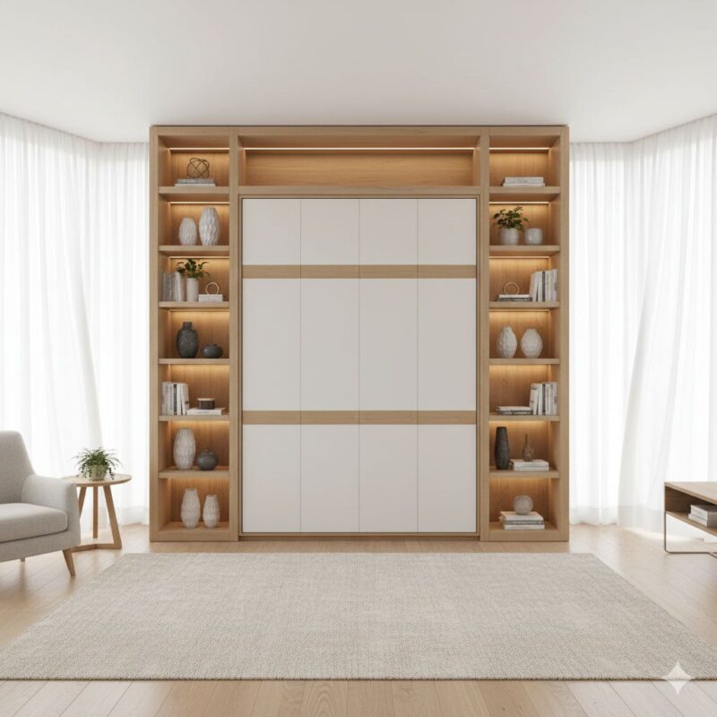 تخت تاشو دو نفره با کمد و تلویزیون